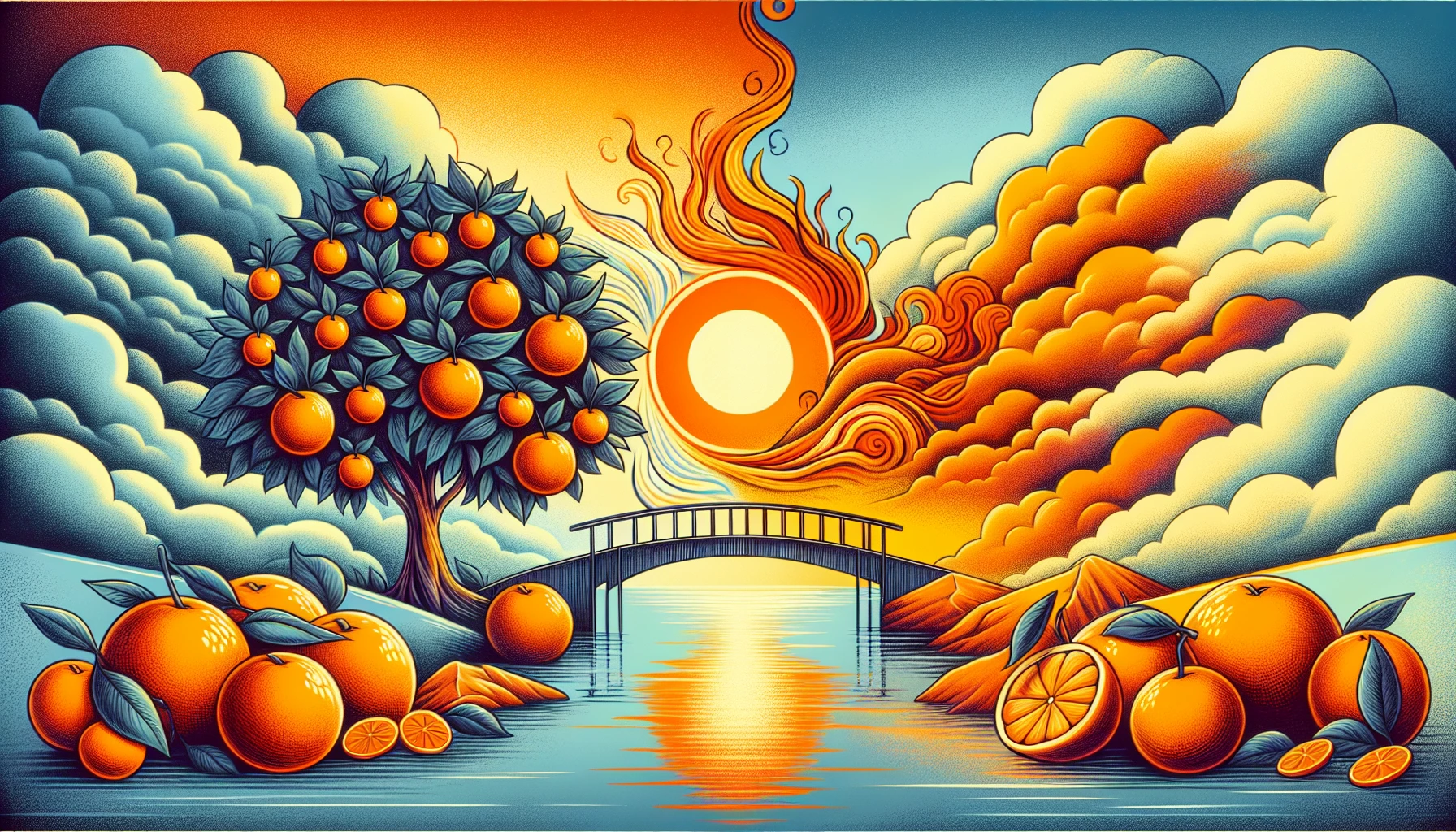 A vibrant, pleasant orange can symbolize healthy desire, playful expression, and emotional balance, while the color yellow may also represent happiness and optimism.